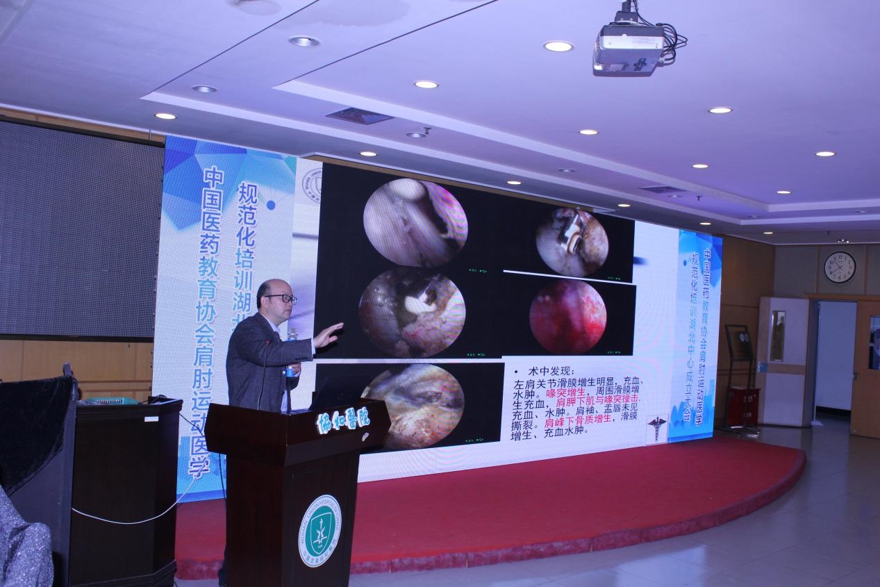 会议最后由孟春庆教授作出总结,他指出,由于肩关节疾病发病率逐年增高,湖北省肩关节镜已逐渐普及,近年来也做了大量的工作,当然在诊断及治疗方面也有待进一步的提高及规范,在这样的背景下,中国医药教育协会肩肘运动医学规范化培训中心湖北中心成立了,湖北中心因有扎实的基础,能够顺应形势,必将茁壮成长!正所谓“乘风破浪会有时,直挂云帆济沧海”。