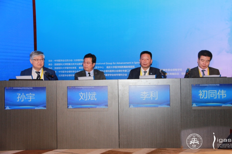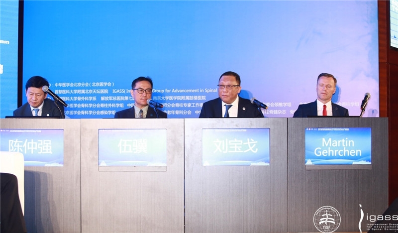 TISF主席刘宝戈教授对到场嘉宾致欢迎辞,分享TISF的成长历程及未来寄予的期望。TISF共同主席邱勇教授介绍了IGASS的由来发展以及IGASS在中国的发展;IGASS主席Martin Gehrchen教授向与会者介绍了IGASS组织的情况,对大会的召开给予了高度评价,对天坛医院骨科的学术水平给予充分肯定;首都医科大学校长尚永丰院士充分肯定了刘宝戈教授带领下的天坛医院骨科在医教研领域所取得的成绩,并期望IGASS和中国骨科同道继续深入交流。