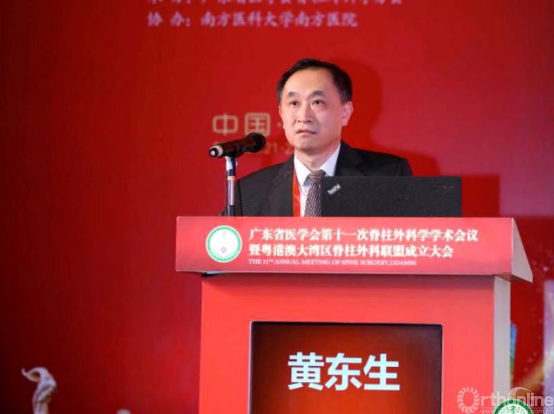 广东省医学会脊柱外科学分会前任主任委员、中山大学孙逸仙纪念医院黄东生教授致辞