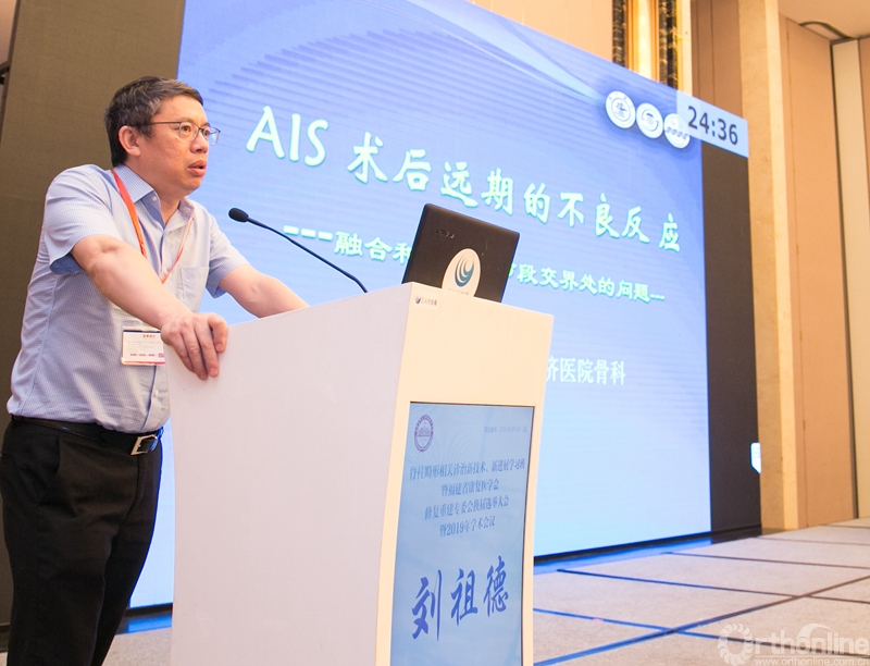 中国医学科学院北京协和医院沈建雄教授发表题为“综合症脊柱侧凸的诊断和治疗”专题讲座,详细阐述了可引起脊柱侧弯的疾病的详细分类和诊断方式以及治疗方式,为本次学习班拉开了序幕。华中科技大学同济医学院附属同济医院方煌教授带来的“脊柱锐弧畸形的外科矫治—风险及对策”,从脊柱锐弧畸形矫形手术中可能遇到的风险及对应的对策入手,条条阐述,关关攻克。山东大学齐鲁医院郑燕平教授和上海交通大学医学院附属仁济医院刘祖德教授分别从AIS的手术治疗及AIS术后的远期并发症入手,层层剖析,将他们所积累的宝贵经验分享给在座专家学者,将现场气氛引向高潮。