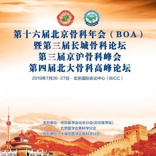 2019年7月26-27日,第十六届北京骨科年会(BOA)暨第三届长城骨科论坛、第三届京沪骨科峰会、第四届北大骨科高峰论坛在中国的政治文化中心——北京隆重召开。