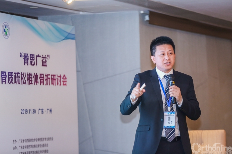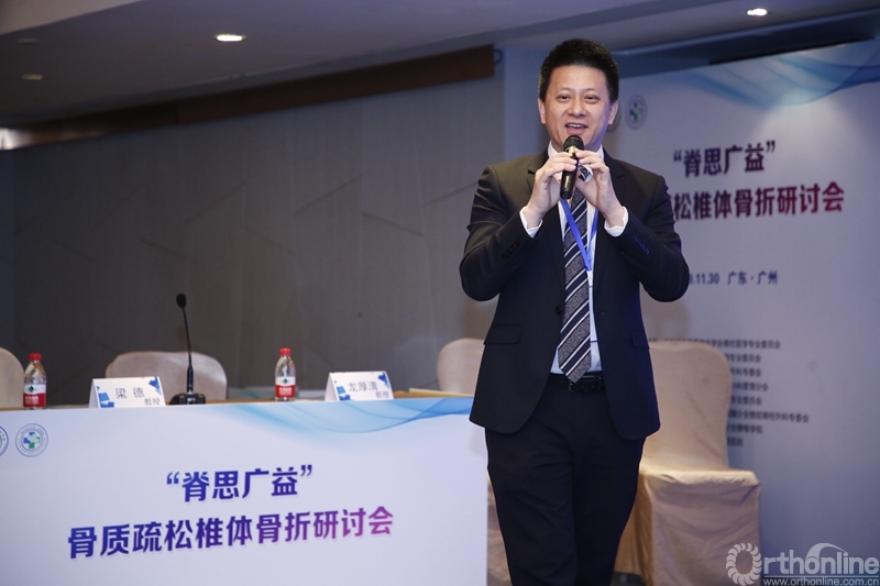 南方医科大学南方医院杨德鸿教授和广州市第一人民医院温世锋教授分别分享了骨质疏松椎体骨折保守和手术治疗的病例,与会嘉宾就两个病例的诊断、治疗进行了深入的讨论。随后,广州中医药大学第一附属医院袁凯博士分别对骨质疏松骨折的治疗方法进行文献回顾,系统总结了骨质疏松椎体骨折不同类型的适宜治疗方法,引起参会同道的高度赞同。苏州大学第一附属医院杨惠林教授表示,上述三个专家的精彩演讲和袁凯博士的系统总结表明,对于骨质疏松骨折这一常见病,必须结合患者具体病情,个体化施治,才能达到最佳的治疗效果。