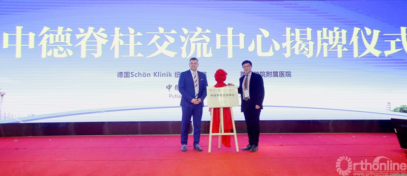 “交流合作,共赢进步”,林海滨教授和Kiaus John Schnake教授在开幕式上举行了“德国Schön Klinik 纽伦堡分院与莆田学院附属医院合作”揭牌仪式。通过合作交流,中德脊柱交流中心将在双方科研、学术交流方面发挥着重要的引领带动作用,能够助推医院微创脊柱水平与国际接轨,提升整体医疗水平,更好地造福福建省广大脊柱疾病患者。
