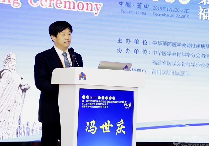 大会顾问、中华预防医学会脊柱疾病预防与控制专业委员会副主任委员、脊柱脊髓损伤疾病预防与控制学组组长、天津医科大学总医院冯世庆教授表示,本届会议是学组的第一次年会,能够成功召开,离不开林海滨院长领导下的莆田学院附属医院全体工作人员的努力。会议为海峡两岸的骨科医师提供了一个沟通交流的学术交流平台,期待大家能相互学习,共同进步。
