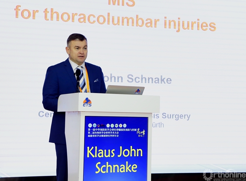 德国Schön Klinik纽伦堡分院Kiaus John Schnake教授讲解了《微创骨折治疗》的课题,主要阐述并总结了腰椎爆裂骨折的分型,及其微创治疗原则和方案。腰椎爆裂骨折在临床上常见且多发,Schnake教授通过生动的临床案例分享了他在该领域的治疗经验。