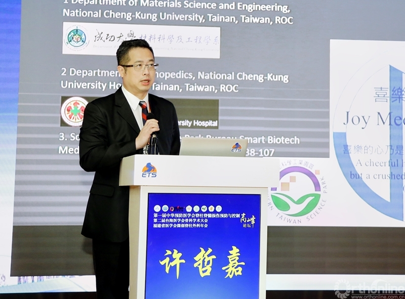 台湾国立成功大学医学院附设医院许哲嘉教授讲解了《一种新研发的钙基复合骨水泥和一种应用新型微创术式治疗新发胸腰椎爆裂骨折的系列案例》的课题,为胸腰椎骨折的治疗提供了更好的选择。