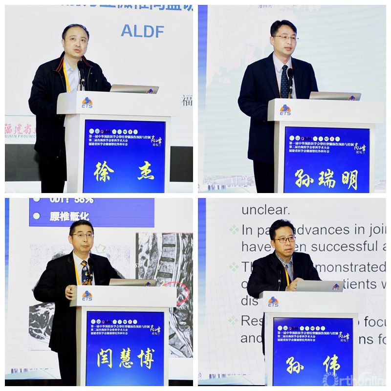 福建省立医院徐杰教授、台湾嘉义基督教医院孙瑞明教授、南方医科大学附属第三医院闫慧博教授、中日友好医院孙伟教授分别讲解了《腰椎斜前方显微椎间盘切除手术的应用:ALDF》《PVP与PKP的临床经验与愈后分析》《MIS-ALIF手术的技术、问题及对策》《体外冲击波治疗股骨头坏死:误区与挑战》。