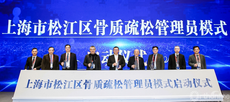 随着老龄化进程的加剧,骨质疏松症已经日益成为严重影响中老年人生活质量的骨骼健康问题。自2018年初担任松江区医学会骨科专科分会的主任委员以来,宋滇文教授带领全区骨科同仁几乎走遍了各个乡镇社区,深入了解了松江区骨质疏松症的发病及防治现状。在借鉴国内外先进经验的基础上,经报请松江区卫健委批准,决定成立“上海市松江区骨质疏松管理员模式”。在开幕式的最后环节,大会主席蔡郑东教授、执行主席宋滇文教授,邀请松江区卫建委李正主任和长三角地区的著名骨科专家一起,为“上海市松江区骨质疏松管理员模式”举行了启动仪式。
