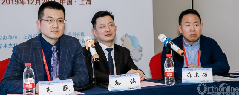 第二节由复旦大学附属华山医院朱巍教授(左)、上海市第一人民医院孙伟教授(中)及上海市松江区中心医院麻文谦教授(右)主持