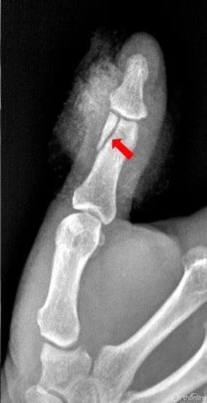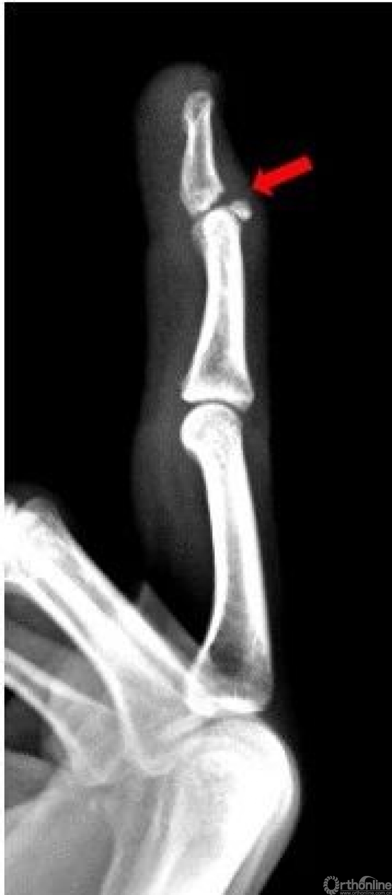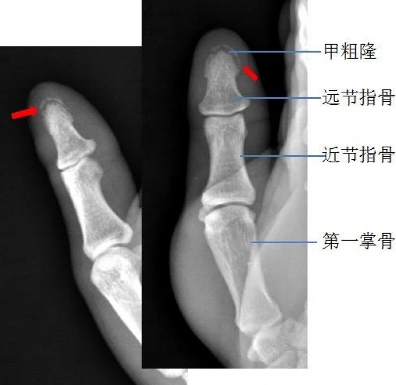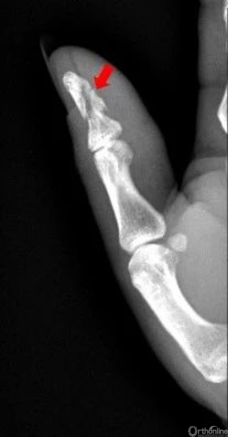 右手拇指远节指骨甲粗隆游离骨碎片影