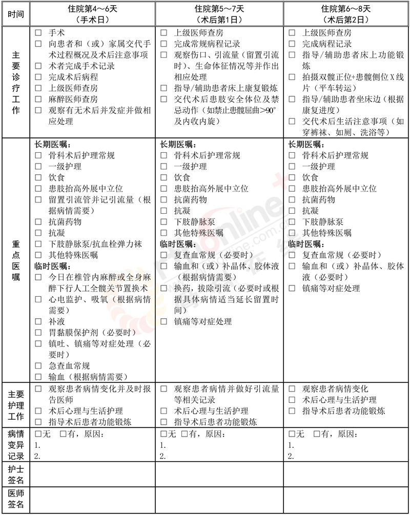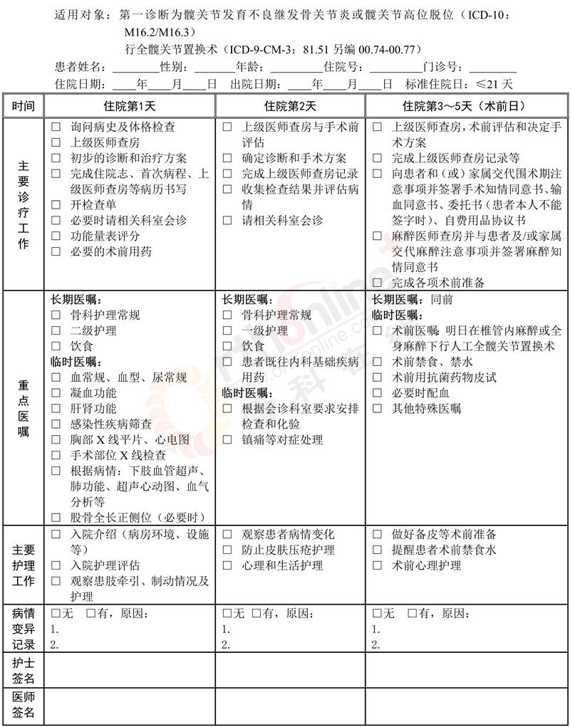 髋关节发育不良临床路径表单