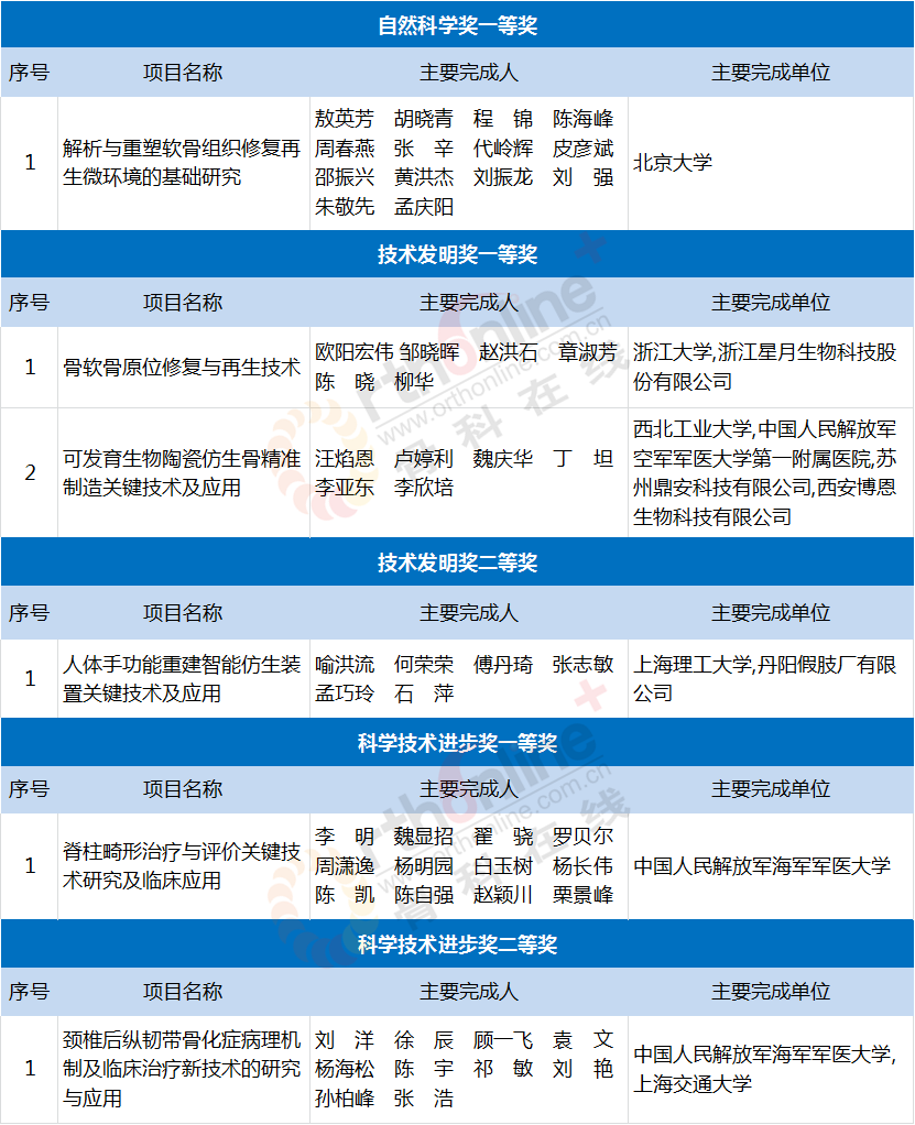 日前,教育部网站正式公布了2019年度高等学校科学研究优秀成果奖(科学技术)获奖名单,6项骨科科研项目名列其中。