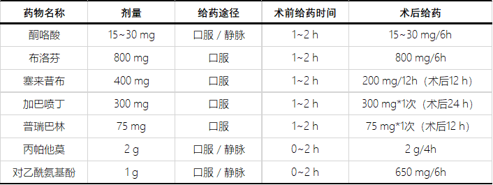 图1 TKA术前及术后常用非阿片类口服镇痛药物
