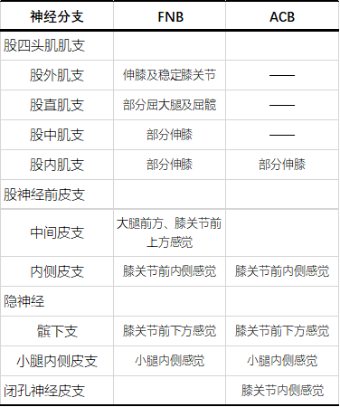 多模式镇痛是目前公认的有效镇痛模式,超前镇痛、关节腔周围注射及外周神经阻滞相组合,既能有效控制术后疼痛,又能减少对阿片类药物的依赖及并发症发生。而对于外周神经阻滞,越来越多的证据显示,相比于FNB,ACB对股四头肌肌力影响更小,更有利于患者术后早期下床及功能锻炼。
