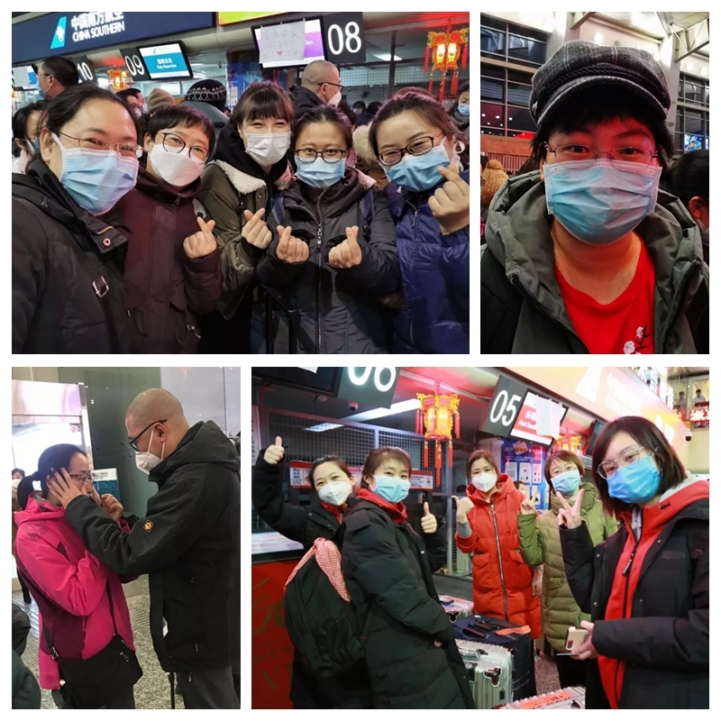 2月8日,中南大学湘雅二医院接国家卫健委的指派,再次集结由30名医生、100名护师组成的130名医护团队出征武汉。骨科戴宇护士长领衔9名“骨科花木兰”抵达武汉。大家一致表示:湘鄂情,一家亲;战胜疫情有信心!
