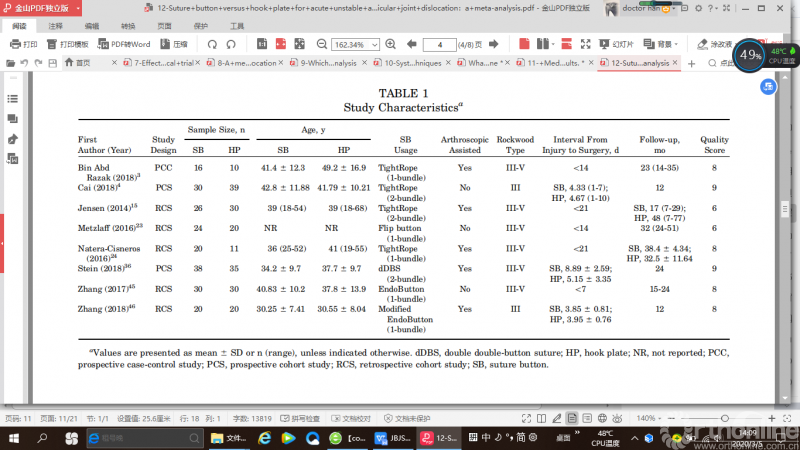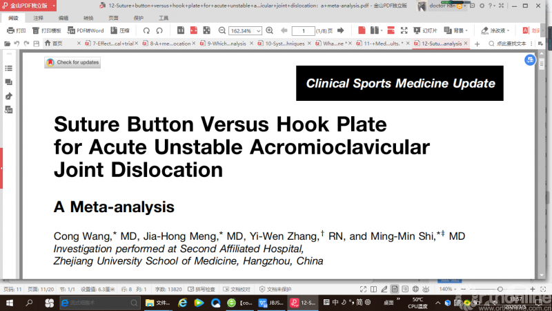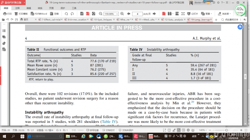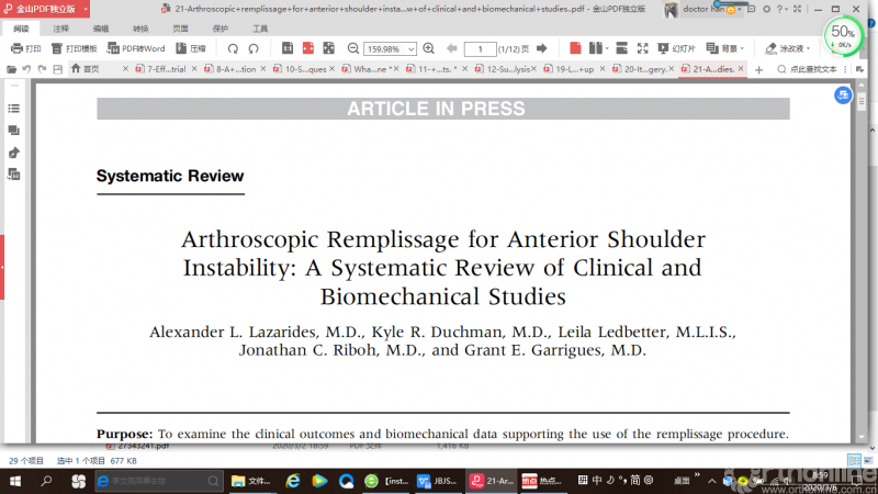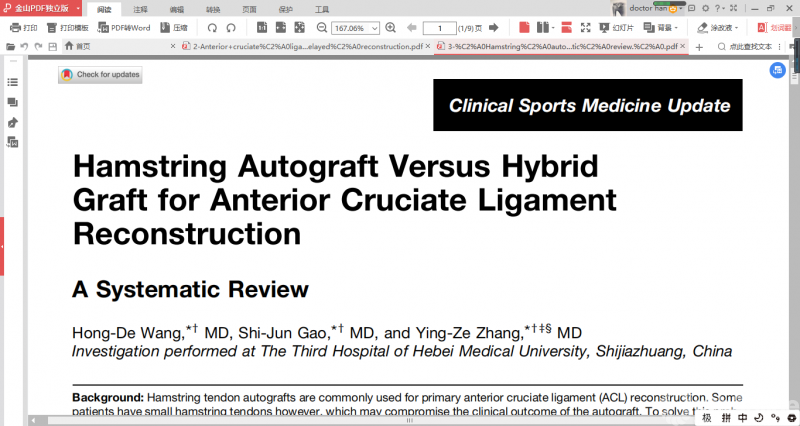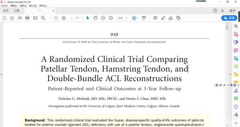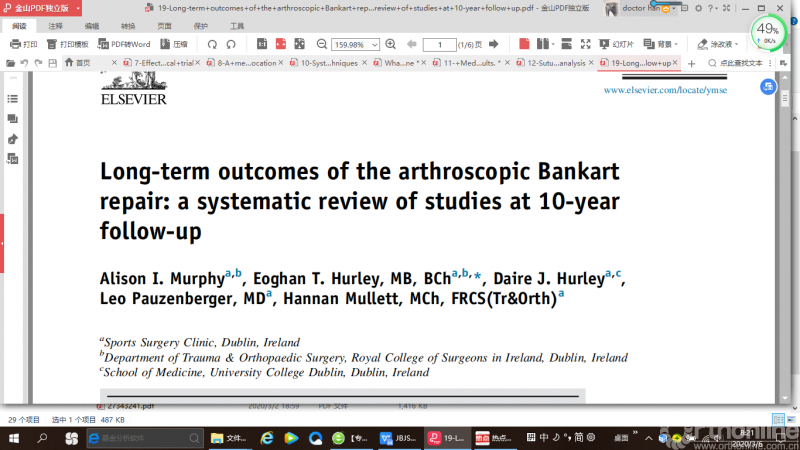 本文更新的内容大多来自2018年10月至2019年9月期间,发表于JBJS(美国骨与关节外科杂志)、AJSM(美国运动医学杂志)以及Arthroscopy(关节镜杂志)的证据等级为I级和II级的临床和基础研究,需要说明的是这篇综述并不是对所有与运动医学相关的研究进行详尽描述。