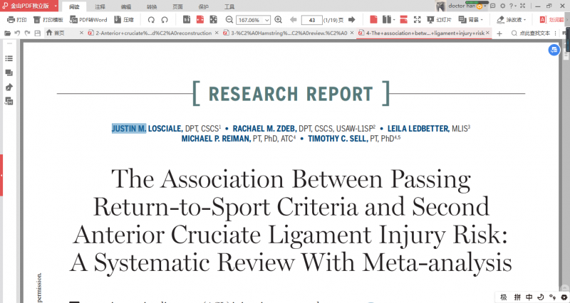 尽管ACL重建的手术数量逐年增加,理想的预防ACL损伤方案和重返运动标准的仍然未知,