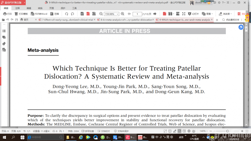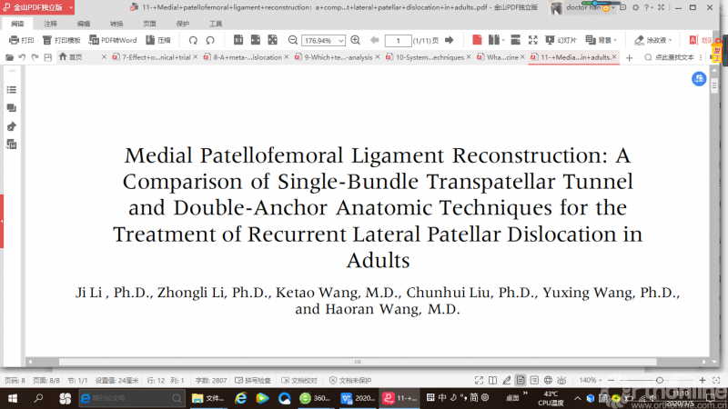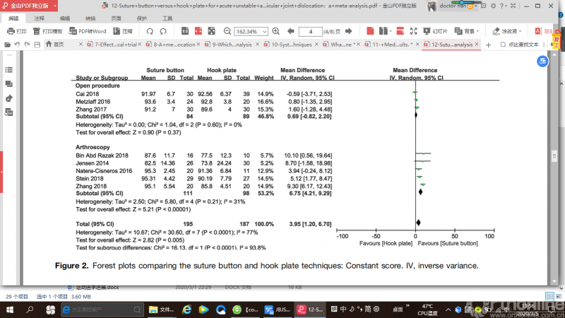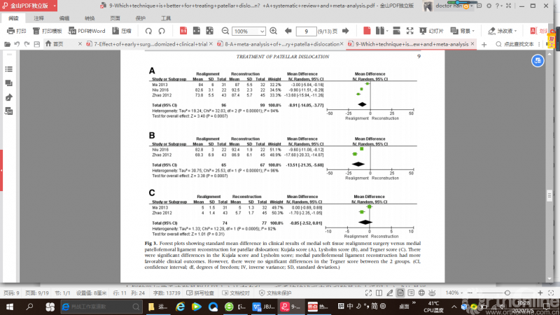 另一项系统评价和meta分析关注对初次髌骨脱位后内侧髌股韧带的处理,结果表明对于初次髌骨脱位的患者来说,MFPL手术处理组和保守治疗组髌骨再次脱位率没有显著性差异。