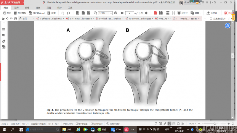 在中国进行的一项前瞻性研究比较了单束经髌骨骨道技术和双锚钉技术,结果表明双锚技术可使髌股关节的接触压力更均匀,可能再改善膝关节功能方面效果更佳。