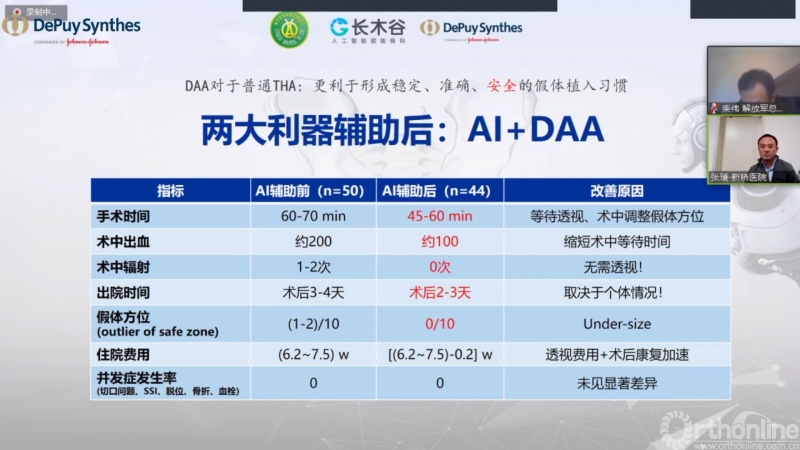 张瑗教授介绍AI人工智能全髋关节置换手术规划与DAA术式的配合,可实现零术中辐射及精准THA的优良手术效果