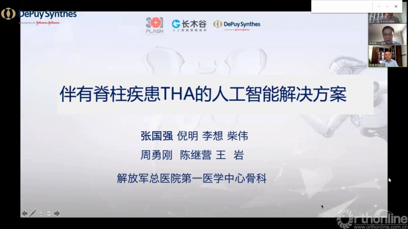 解放军总医院第一医学中心张国强教授首先讲授了AI HIP人工智能全髋关节置换手术解决方案用于伴有脊柱疾患的复杂初次全髋关节置换手术的术前规划。