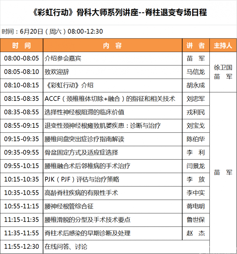 从6月6日至7月12日,由百余位国内骨科顶级专家参与的10场精品网络课程,在5个周末与全国骨科医师如期“云端”相会。从初夏到盛夏,这10场网课犹如10道学术虹桥,在特殊时期为一线医生获取临床新知架起便捷的求学桥梁,让2020年度“彩虹行动”更加五彩斑斓。