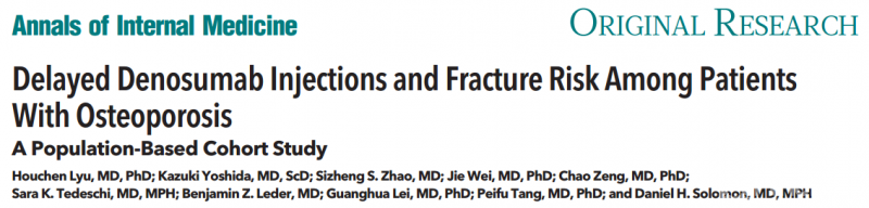 7月28日,解放军总医院骨科医学部、国家骨科与运动康复临床研究中心唐佩福教授团队与中南大学湘雅医院骨科、国家老年疾病临床医学研究中心(湘雅)雷光华教授团队以及哈佛大学Daniel Solomon教授团队合作,在骨关节退行性疾病防治领域取得的重要研究成果,以“Delayed Denosumab Injections and Fracture Risk Among Patients With Osteoporosis:A Population-Based Cohort Study”为题,在国际著名医学期刊《Annals of Internal Medicine》(IF 21.317)以原创论著形式发表。