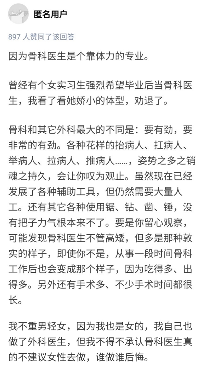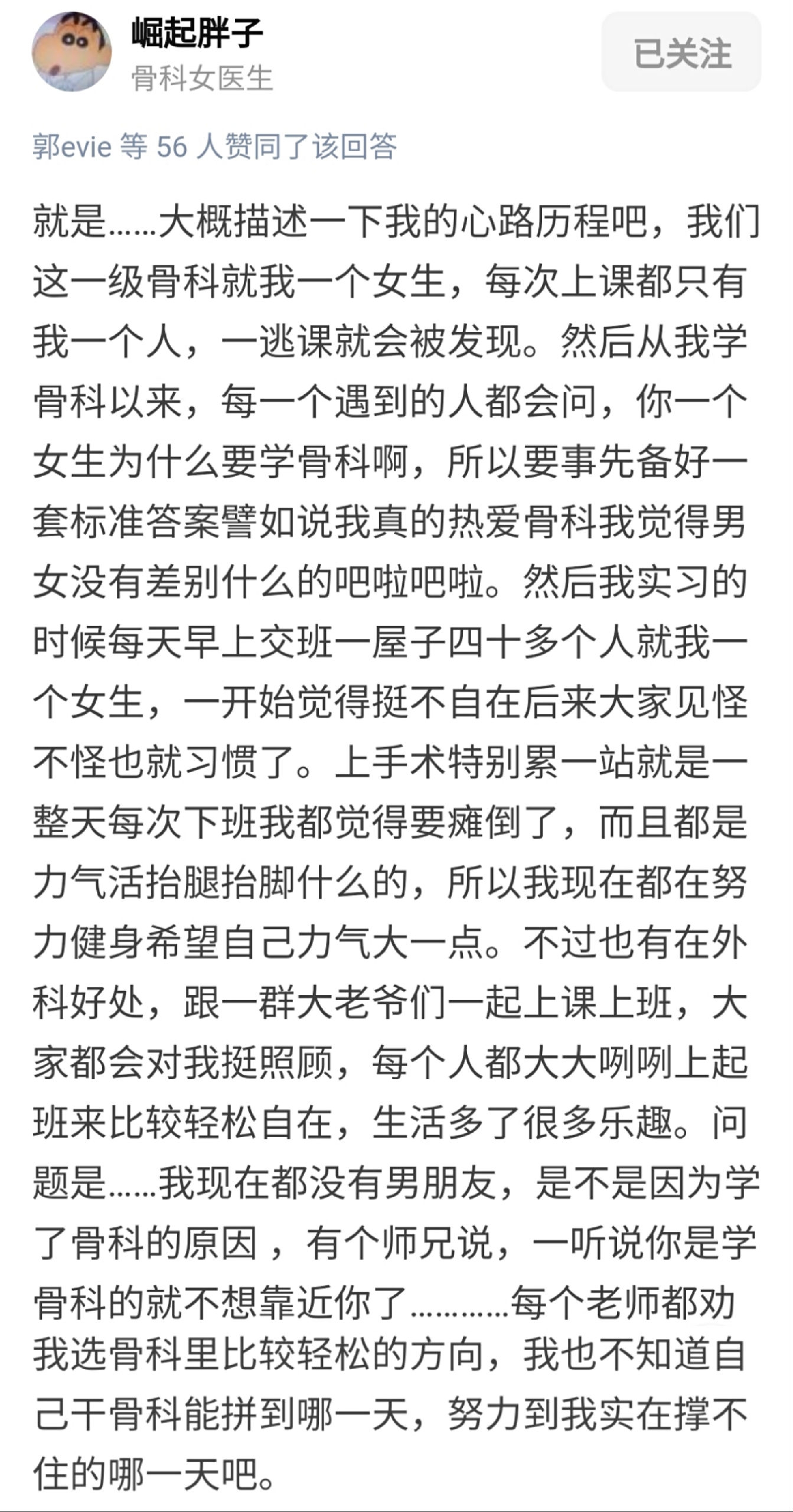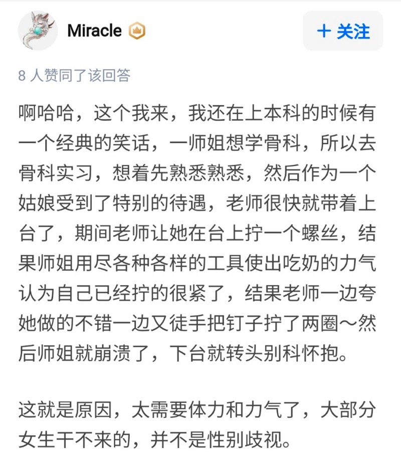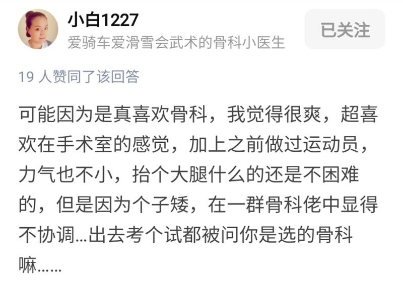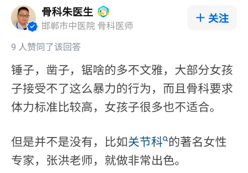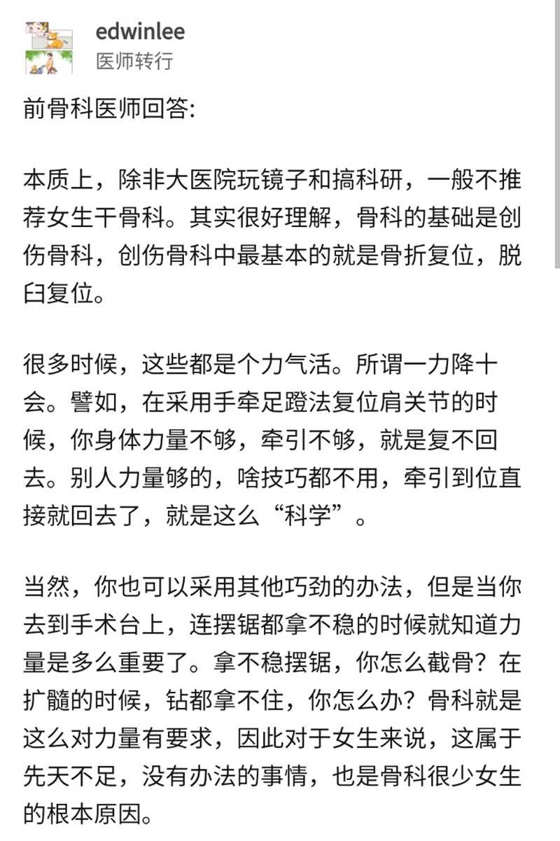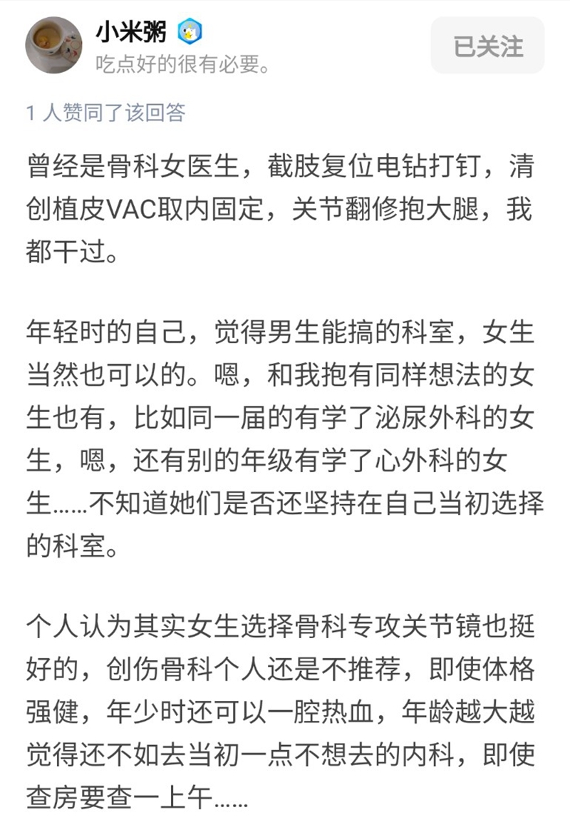 有爱好医学的女生提问:女生适合当骨科医生吗?