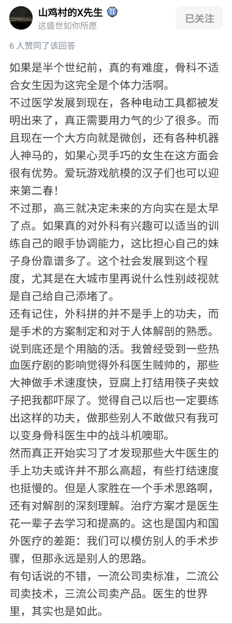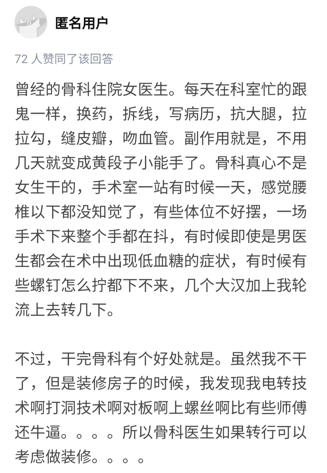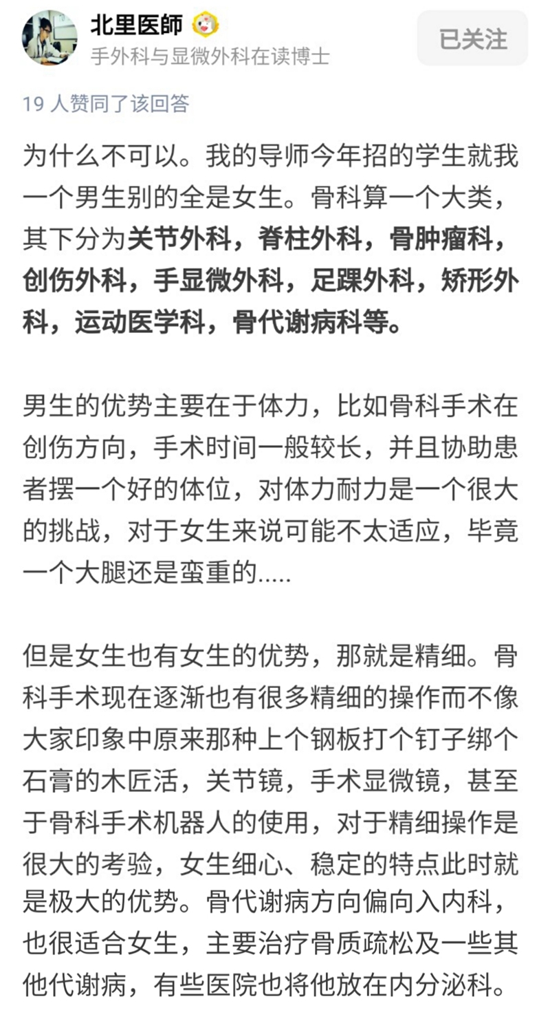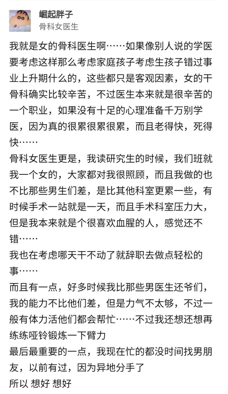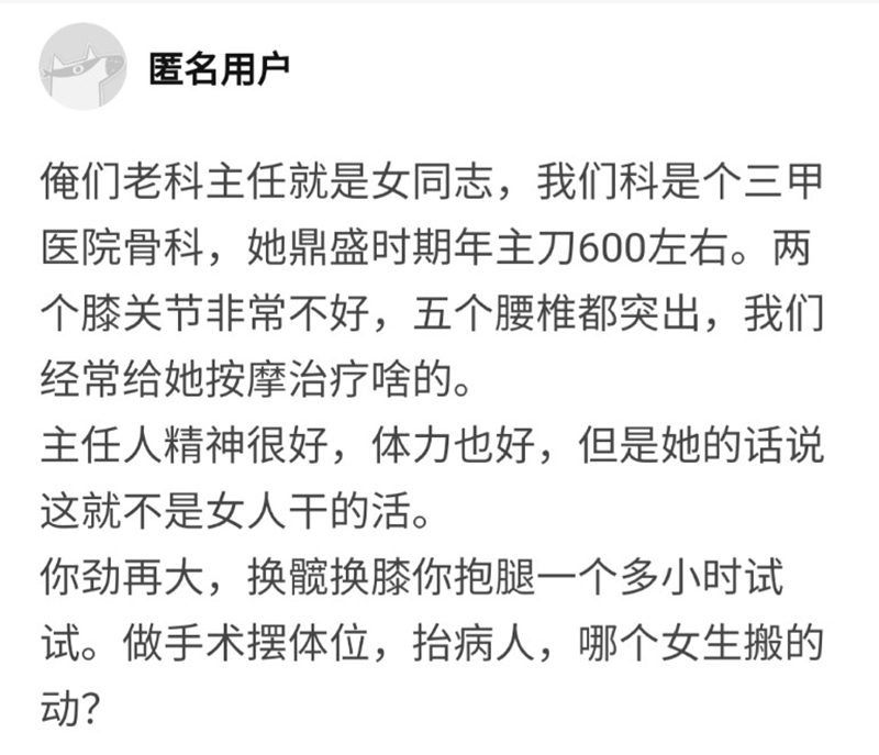 有爱好医学的女生提问:女生适合当骨科医生吗?