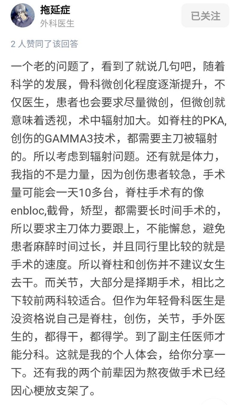 通过知乎热议的相关问题,来让更多人了解骨科铿锵玫瑰的工作状态,并为有志于当骨科医生的女生提供一些参考。