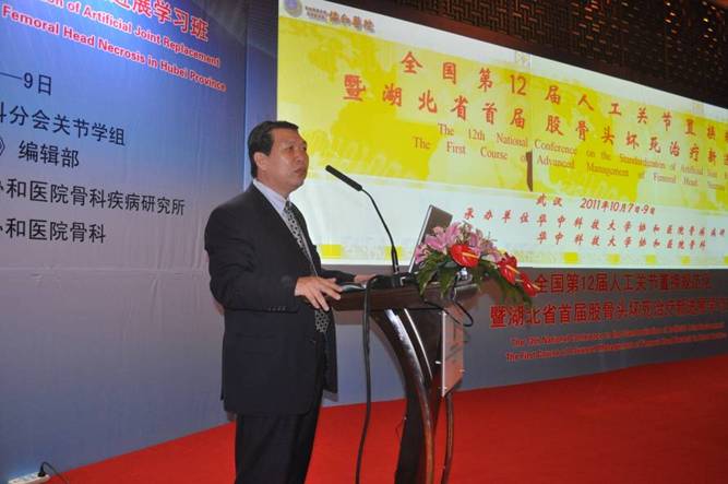 2011年10月8日—9日,由中华医学会骨科学分会关节学组主办,华中科技大学协和医院骨科承办的全国第12届人工关节置换规范化暨湖北省首届股骨头坏死治疗新进展学习班在武汉成功举办。开幕式由本次大会主席、中华骨科学会常委、湖北省骨科学会主任委员、协和医院骨科主任杨述华教授主持,协和医院党委书记、院长王国斌教授致欢迎辞并发表重要讲话,并代表协和医院授予我科“股骨头坏死专科”荣誉称号。此次学习班邀请了三十多位国内骨科关节领域顶级知名专家做人工关节置换及股骨头坏死方面的专题报告,外省嘉宾近两百人,与会嘉宾共400余人次。