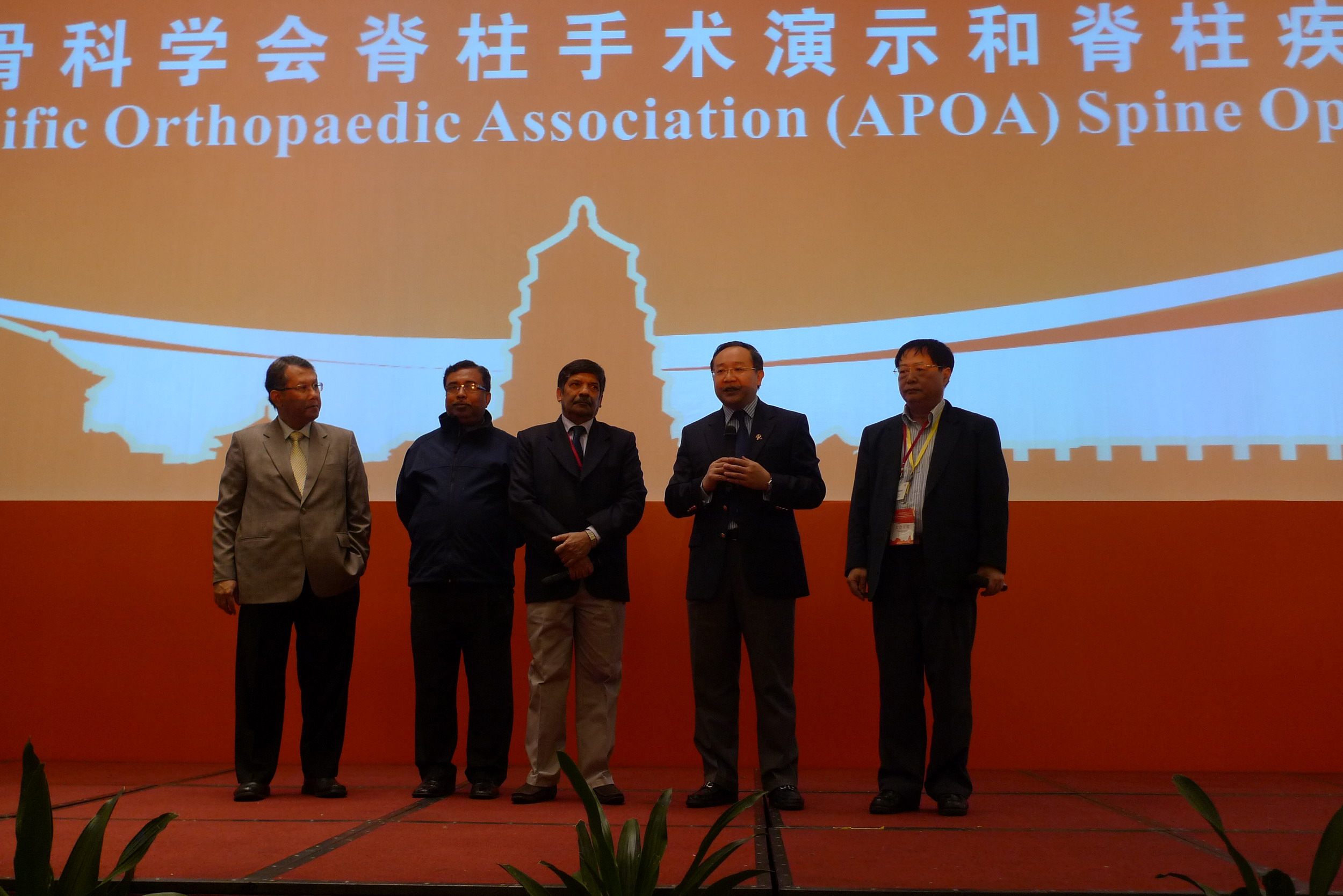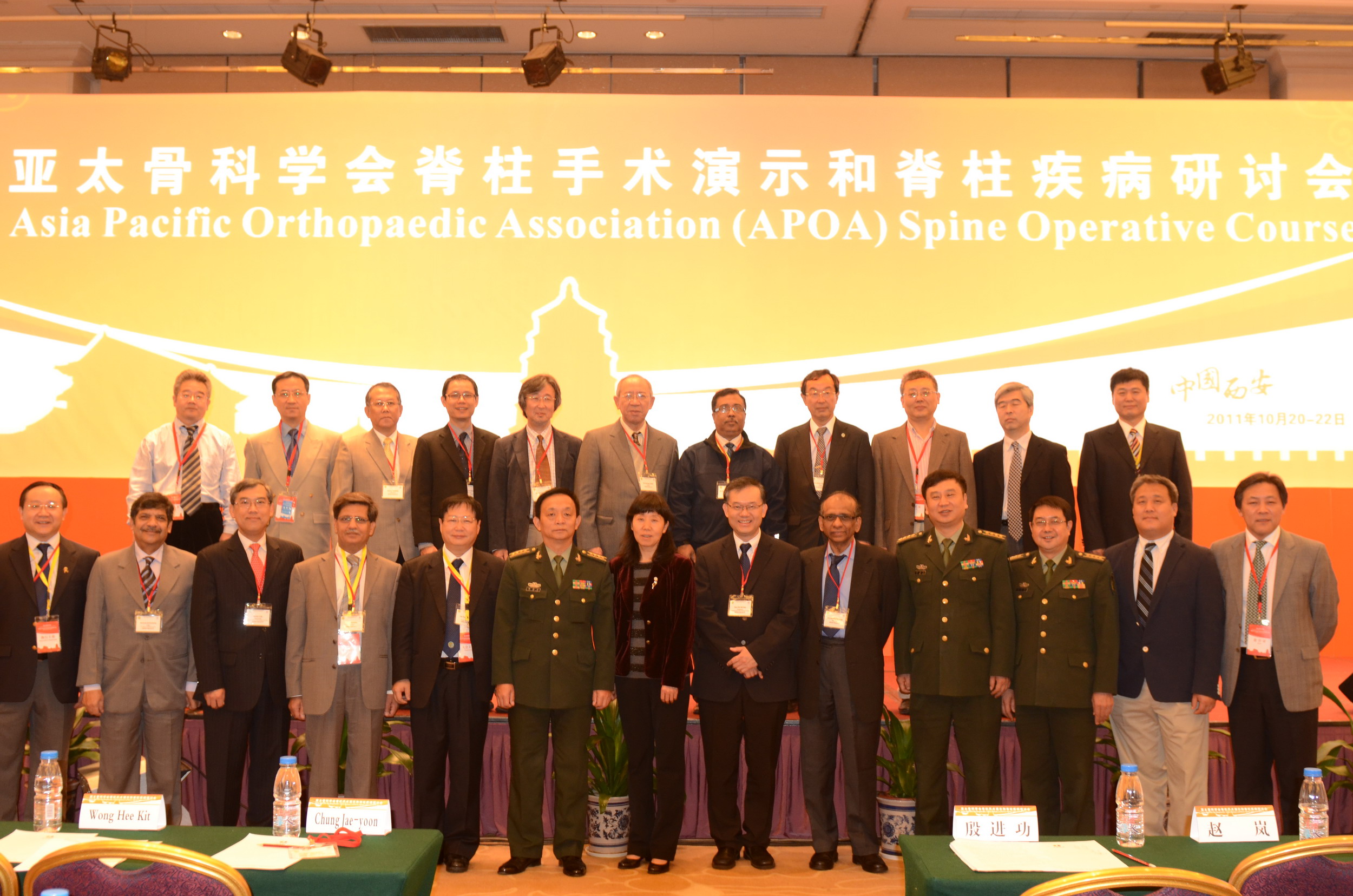 2011年10月20日上午,由亚太骨科学会(Asia Pacific Orthopedic Association, APOA)主办,第四军医大学西京骨科医院脊柱外科、陕西省医学会、陕西省医学会脊柱外科分会承办的“2011亚太骨科学会(APOA)脊柱手术演示及脊柱疾病研讨会”在西安建国饭店隆重举行。