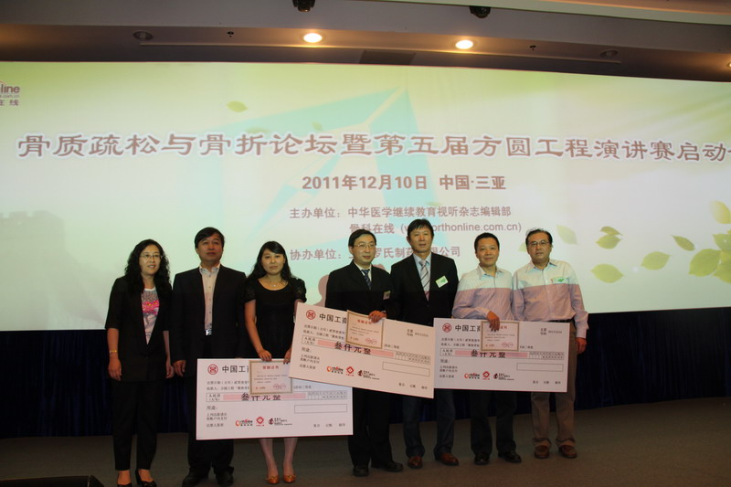 2011年12月10日,来自全国的30余位专家代表及骨科医师齐聚海南三亚参加了“2011方圆论坛骨质疏松专题总结暨病例总评会”,会议由中华医学会骨科学分会副主任委员,中国医师协会骨科医师分会会长上海交通大学附属第六人民医院曾炳芳教授;中华医学会骨科学分会副主任委员及关节外科学组组长,西安交通大学附属第二医院王坤正教授共同主持。中华医学会骨科学分会副主任委员,四川大学华西医院骨科暨骨质疏松中心主任裴福兴教授;中华医学会骨科学分会委员,广东省骨科学分会主任委员,南方医科大学附属第三医院院长金大地教授;中华医学会骨质疏松与骨矿盐学分会副主任委员,骨科学分会骨质疏松学组委员,南京鼓楼医院林华教授;中华医学会骨科学分会创伤学分会委员,广东省骨科学分会副主任委员,北京大学深圳医院院长肖德明教授;中华医学会骨科学分会关节外科学组委员,广东省骨科学分会副主任委员,中山大学附属中山第一医院廖威明教授;湖南省骨科学分会副主任委员,湖南省人民医院黄象望教授;中华医学会骨科学分会创伤学分会秘书长暨骨质疏松学组委员,北京积水潭医院副院长贺良教授;中华医学会骨科学分会骨质疏松学组委员,北京友谊医院唐海教授;中华医学会骨科学分会骨质疏松学组委员,重庆医科大学附属第一医院胡侦明教授;中华医学会骨科分会基础学组委员、骨质疏松学组委员,中山大学附属中山二院丁悦教授;中华医学会电子音像出版社社长,史红编审;中华医学继续教育视听杂志编辑部主任、骨科在线主任、中国健康促进基金会理事兼副秘书长丁晓榕女士;上海罗氏制药罗盖全市场经理谢琼女士等参加出席会议。