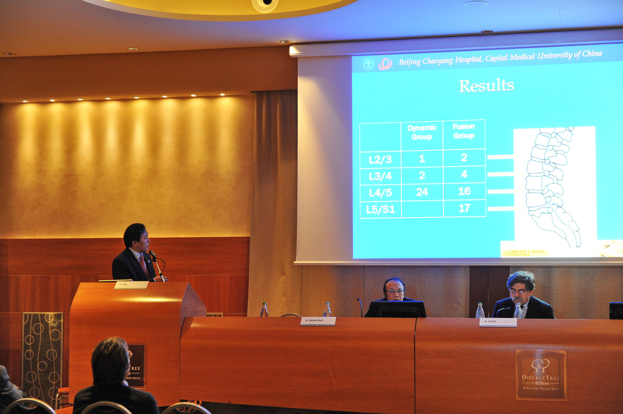 2011年3月4-6日,应意大利脊柱学会的邀请,首都医科大学附属北京朝阳医院骨科海涌主任参加了该学会主办的第三届国际腰椎管狭窄症学术会议。来自美国、加拿大、德国、法国、瑞士、瑞典、中国、印度尼西亚、日本、埃及以及意大利的近200名脊柱外科和神经外科专家学者参加了本次会议。在本次会议上,与会专家学者就腰椎管狭窄症的病因病理、诊断分类、腰椎管狭窄症的阶梯治疗等方面的最新进展和动态进行了详尽的介绍,同时就该领域的焦点问题包括微创手术和动态稳定技术等进行了热烈的讨论。海涌主任作为中国唯一的特邀嘉宾在本次会议上应邀做了专题演讲,介绍了北京朝阳医院在腰椎管狭窄症的微创减压以及动态稳定技术应用的经验,获得了与会者的好评。