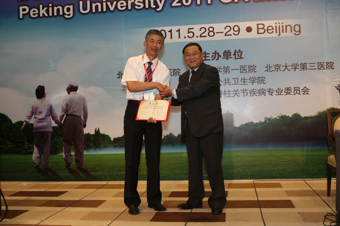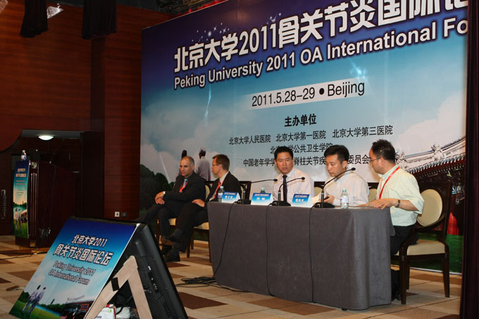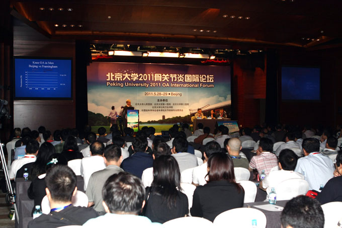 北京大学人民医院、北京大学第一医院、北京大学第三医院、北京大学公共卫生学院、中国老年学学会老年脊柱与关节专业委员会联合发起的“北京大学2011骨关节炎国际论坛”,于2011年5月28日至5月29日在人民卫生出版社召开。本次论坛邀请国内外最知名专家交流讨论,专业氛围浓郁,学术性强,是国内第一次真正意义上讨论骨关节炎这一在中国拥有上亿患者疾病的综合性论坛。