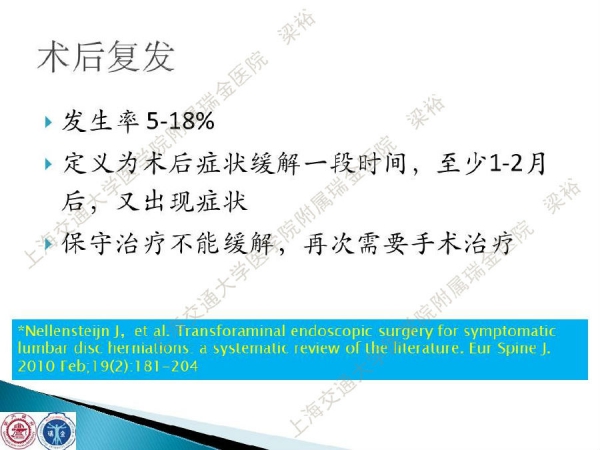 随着微创技术的发展以及手术经验的积累,脊柱微创手术已开始逐步取代传统的脊柱外科手术。微创手术已涉及从颈椎到腰椎的整个脊柱。从简单的椎间盘手术到复杂的 脊椎手术,手术类型越来越多样。在所有的脊柱微创手术中,尤其脊柱内镜手术在过去10年中取得了惊人的进步。在技术发展的同时,脊柱内镜的手术并发症问题也逐渐浮出了水面,针对脊柱内镜手术的并发症与其对策,上海交通大学医学院附属瑞金医院梁裕教授介绍了他们的经验。