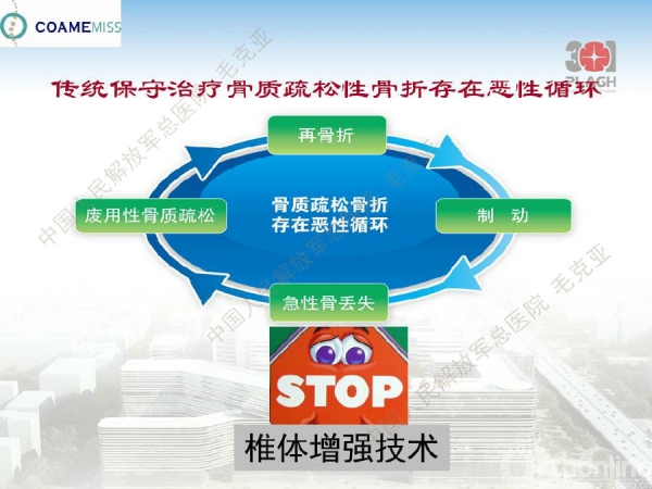 导语:随着社会老龄化的不断加速,骨质疏松性椎体压缩骨折作为一种普遍存在的老年骨科疾病已经成为现今骨科界的一个热点话题。传统的保守疗法治疗效果不佳,而现有的椎体增强技术又具有多种风险和缺陷。针对这种现状,中国人民解放军总医院毛克亚教授提供了一种新的解决方法。