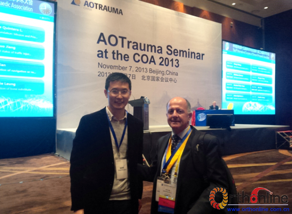 2013年11月7日,AO Foundation主席Jaime Quintero教授在2013年COA AO创伤会场做了“骨折后畸形愈合的治疗原则”的讲座。随着骨折手术治疗的进展,骨折后畸形愈合日益少见。但骨折后畸形愈合治疗却是治疗困难,需要个体化分析,个体化处理。治疗前创伤骨科医生要详细了解患者的主诉与症状,通过体格检查和影像学检查确定患者的畸形(包括力学轴、旋转畸形、下肢不等长、关节内畸形等),注意软组织条件,术前进行细致的规划,并与患者进行深入的交流,以确定最佳的治疗方案。