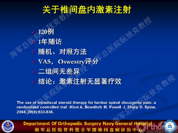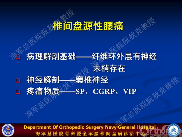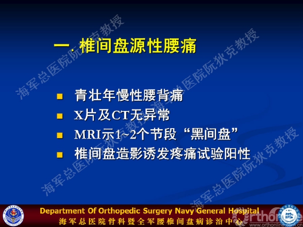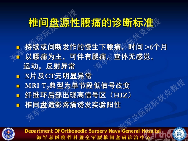 如何对椎间盘源性下腰痛进行规范化诊治?海军总医院骨科暨全军腰椎间盘病诊治中心阮狄克教授在2015年中国医师协会骨科医师分会骨科康复专业委员会学术年会上,通过《椎间盘源性下腰痛的诊断与治疗》的主题报告,与大家分享了椎间盘源性腰痛的诊断的6大标准和治疗进展——