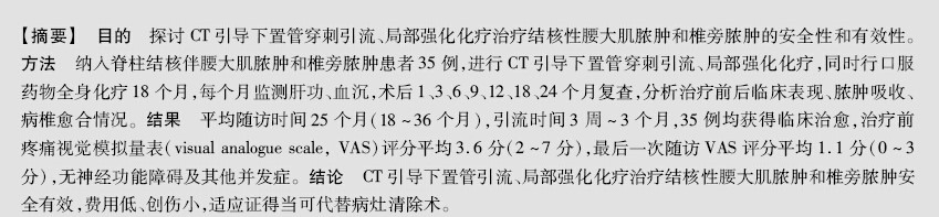 CT引导下置管引流局部强化化疗治疗结核性腰大肌脓肿和椎旁脓肿