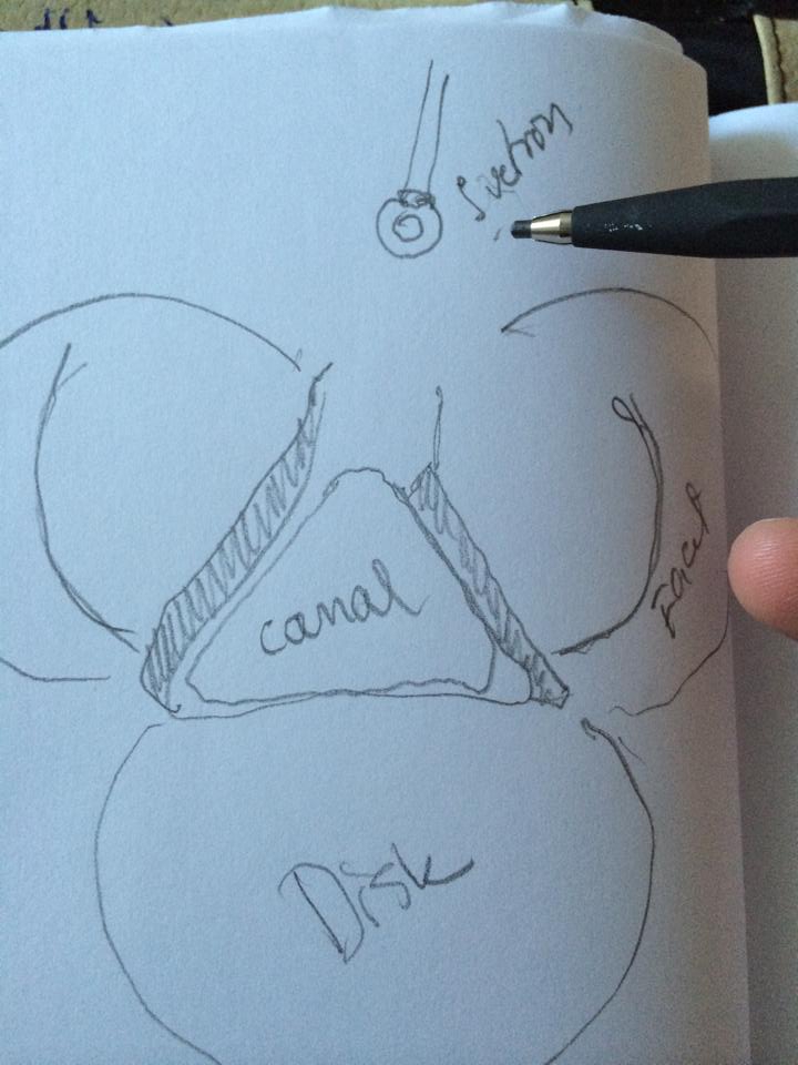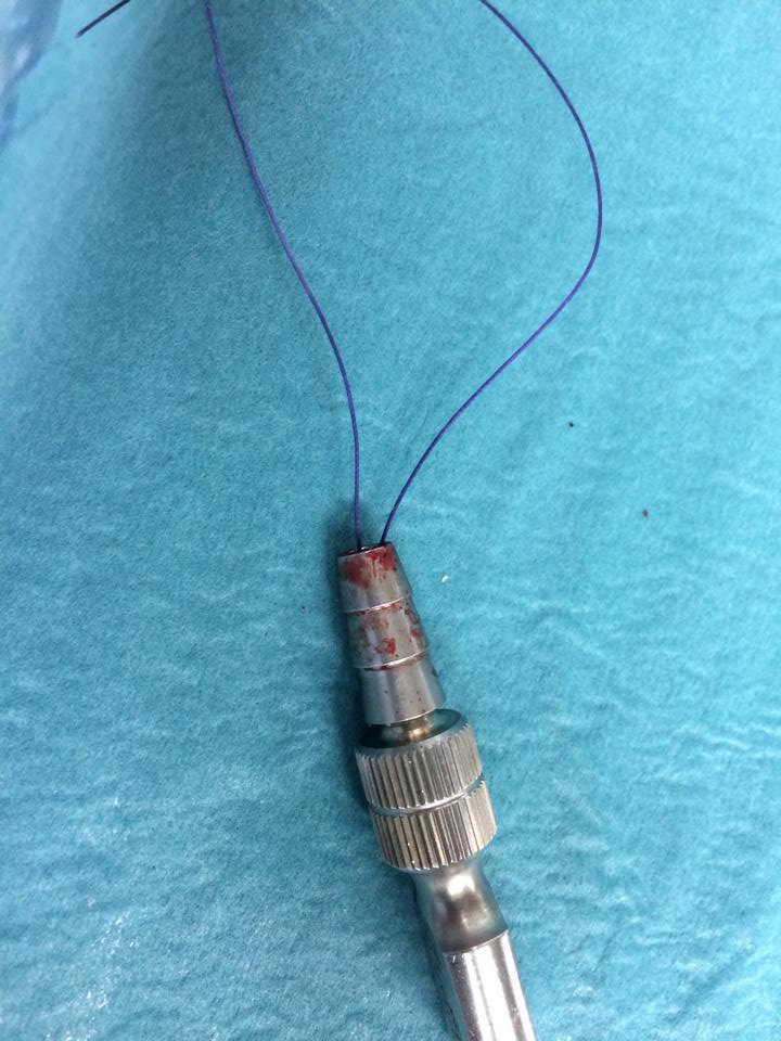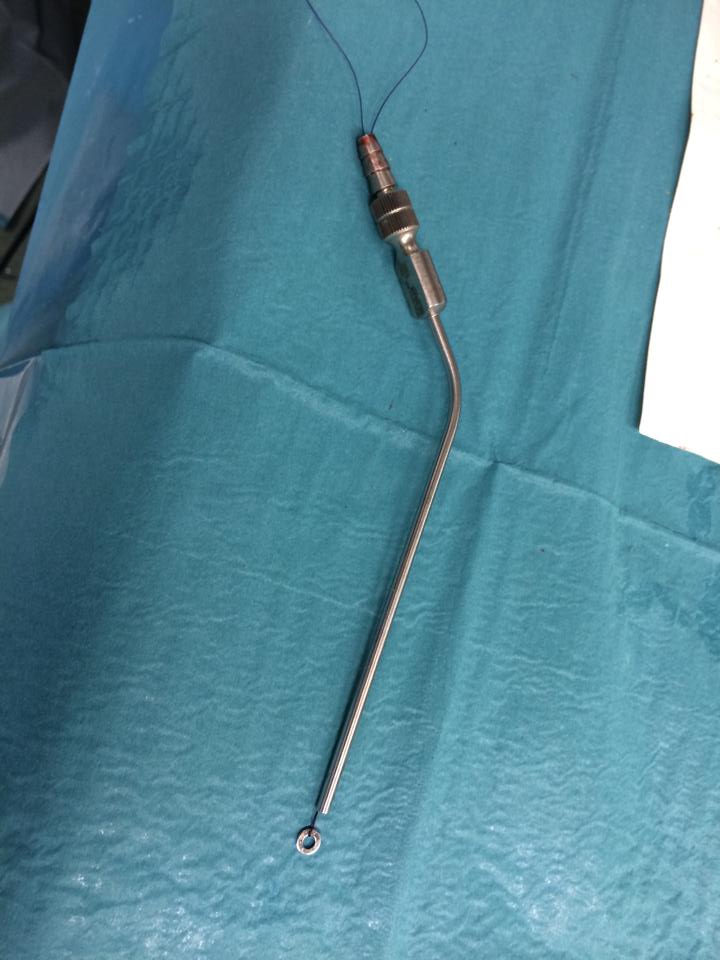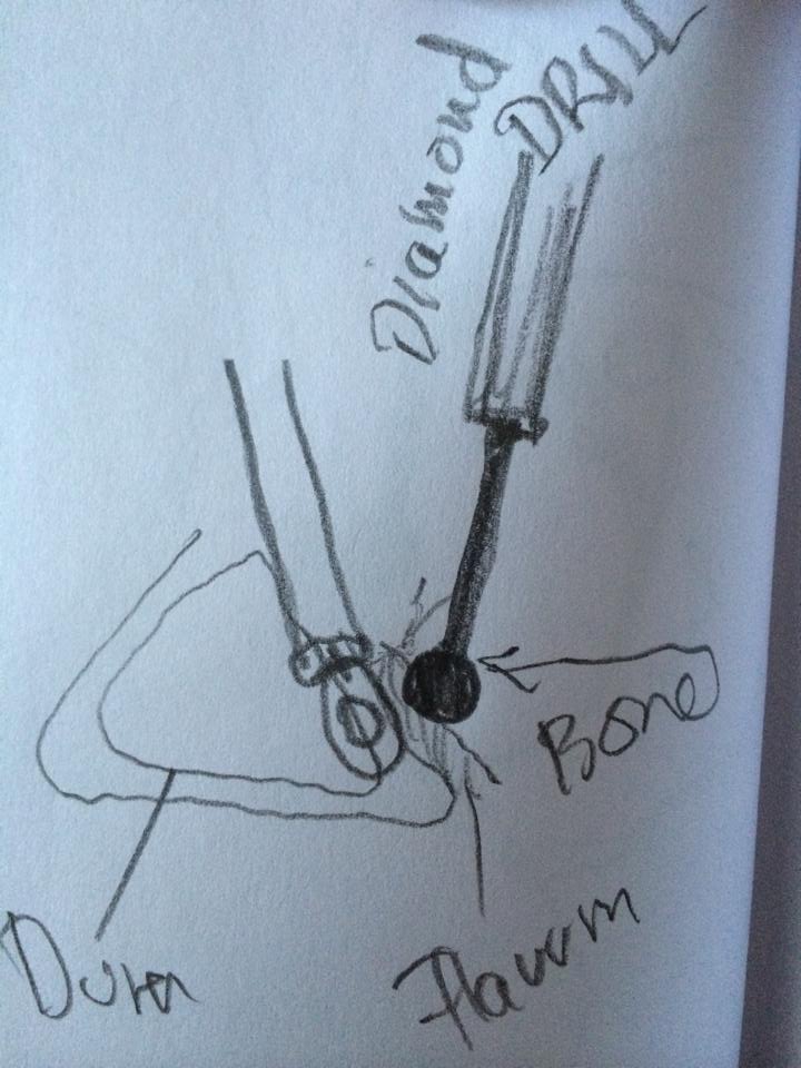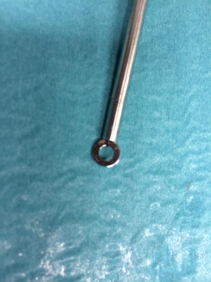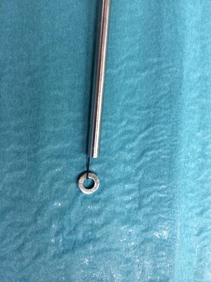 仔细看上图,我对他这个的理解是,铁圈被放在吸引器头的远端,可以任意改变方向,且是扁平的,不占据操作空间,同时,使用那个细线可以保持这个远端铁圈的张力,而且不影响吸引器的使用,且隔开了磨钻头和硬膜。