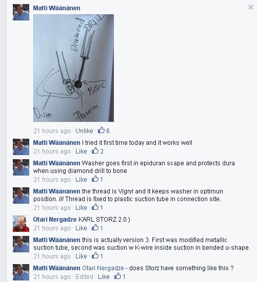 这是我在网上经常交流的一位芬兰的神经外科医生(做脊柱手术),最近,他在网络上向我们展示了一个他的“小”发明,大家看看,如果你能仔细想想,这个小创意还是很有意思。