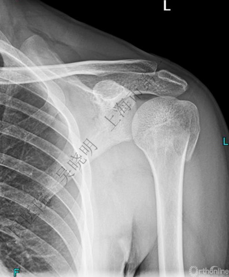 X线是孤立性向下移位的大结节,一定要小心,多伴有肱骨外科颈骨折