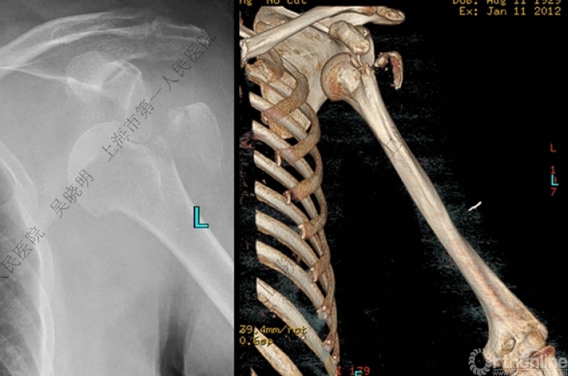 肱骨解剖颈伴大结节骨折的老年性肩关节前脱位