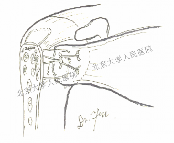 手绘肩胛下肌腱移位手术(填充肱骨头骨缺损)