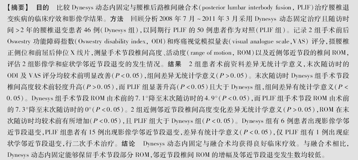 Dynesys动态内固定与融合术治疗腰椎退变疾病的对比研究
