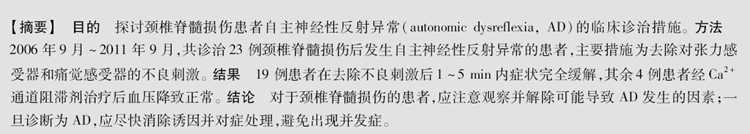 颈椎脊髓损伤患者自主神经性反射异常的临床处理