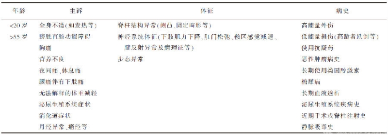 详细的病史采集对于明确NSLBP的诊断具有重要意义,尤其是初次就诊的患者,病史采集的内容应包括疼痛的部位和程度、发病时间和可能的病因、既往史、心理精神状况、发病前从事工作的相关信息等[1、23],同时应特别关注患者是否存在红色警示[10、44~46、48]。(2级推荐)