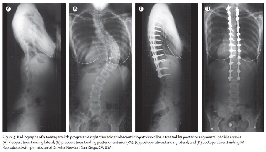 Stuart L, Lori A, Jack C, Aina D, Jose A. Adolescent idiopathic scoliosis. Lancet 2008 May 3, 371(9623):1527-37